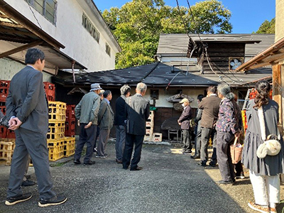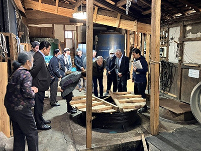 | (資)井坂酒造店で店主を交えた集合写真 | |