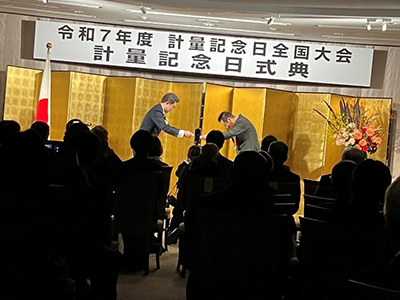 令和7年11月4日(火)インターコンチネンタル東京ベイ(東京都港区)において、令和7年度計量記念日全国大会が開催され、大会第一部の計量記念日式典で経済産業大臣表彰及びイノベーション・環境局長表彰式が行われました。